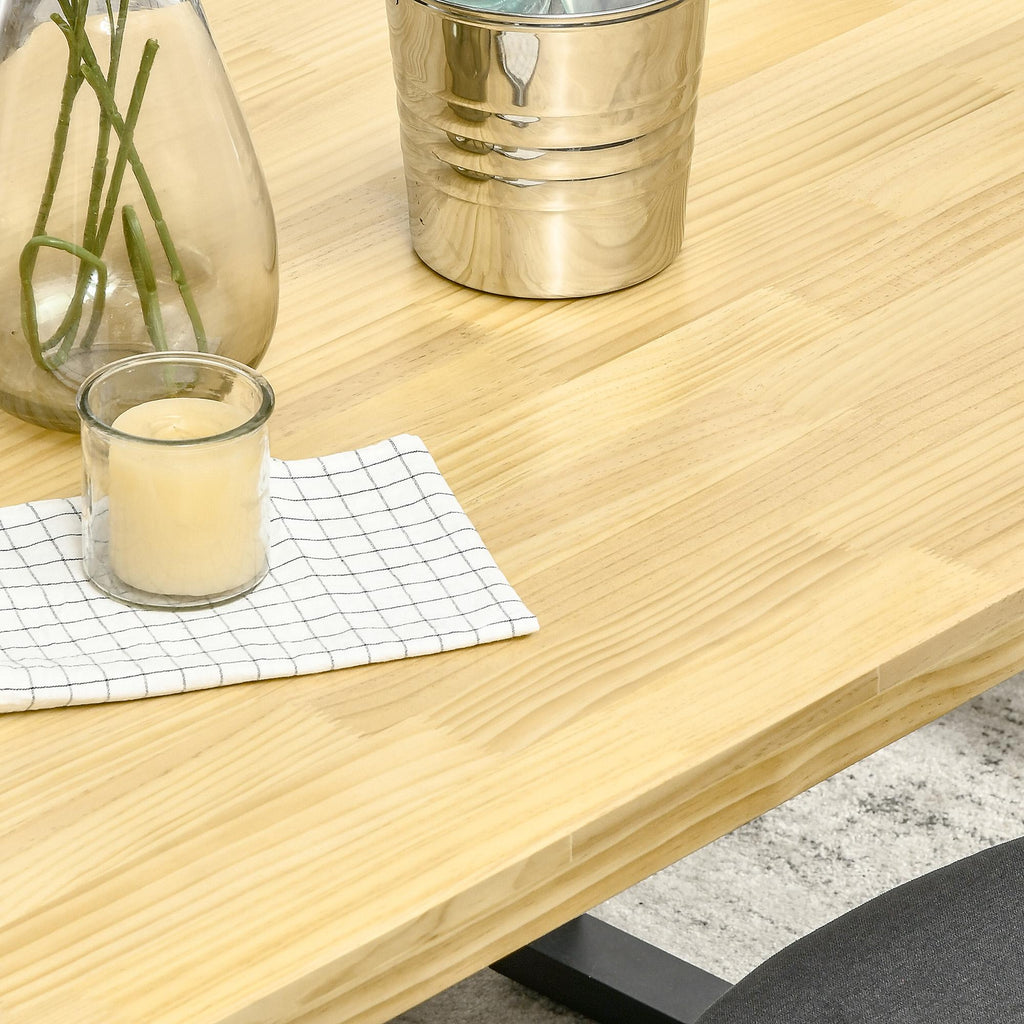 - Piano in Legno Spesso: Il piano di appoggio di questo tavolo da pranzo è spesso e realizzato con legno di pino, che si fa distinguere per il suo stile e la sua robustezza