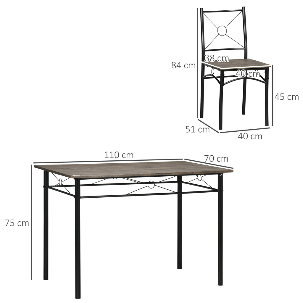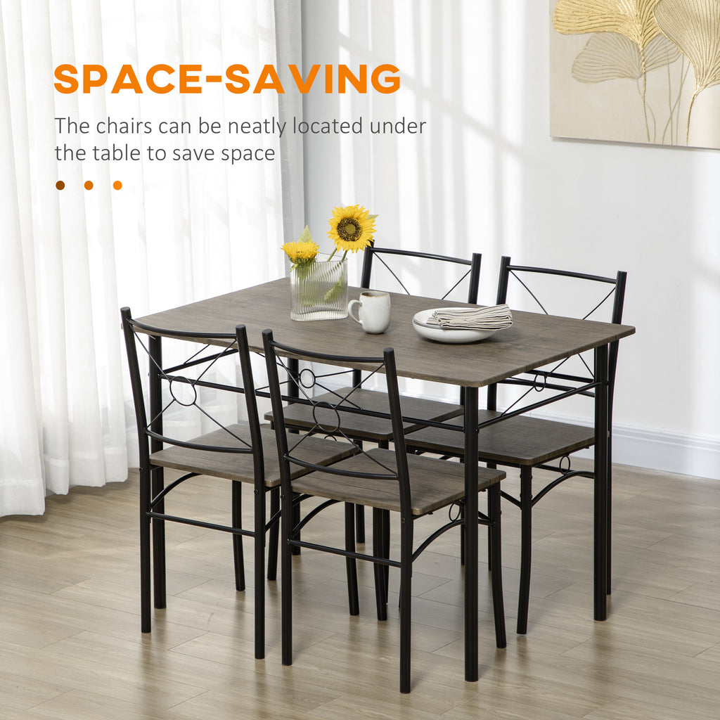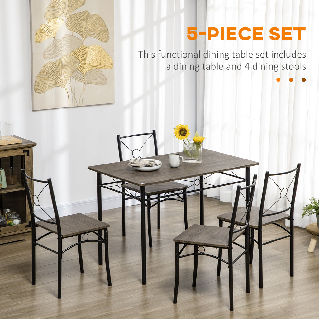 Tavolo da Pranzo con 4 Sedie in MDF e Metallo Marrone e Nero