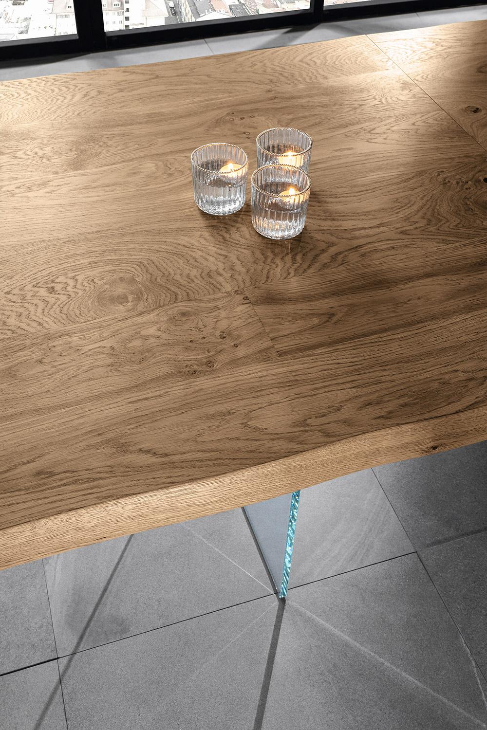 Tavolo Fisso 160x90x76 cm Gambe in Vetro con Top in Rovere Naturale