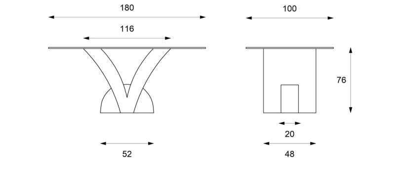 Tavolo Fisso 180x100x76 cm in Pietra con Top in Vetro Trasparente