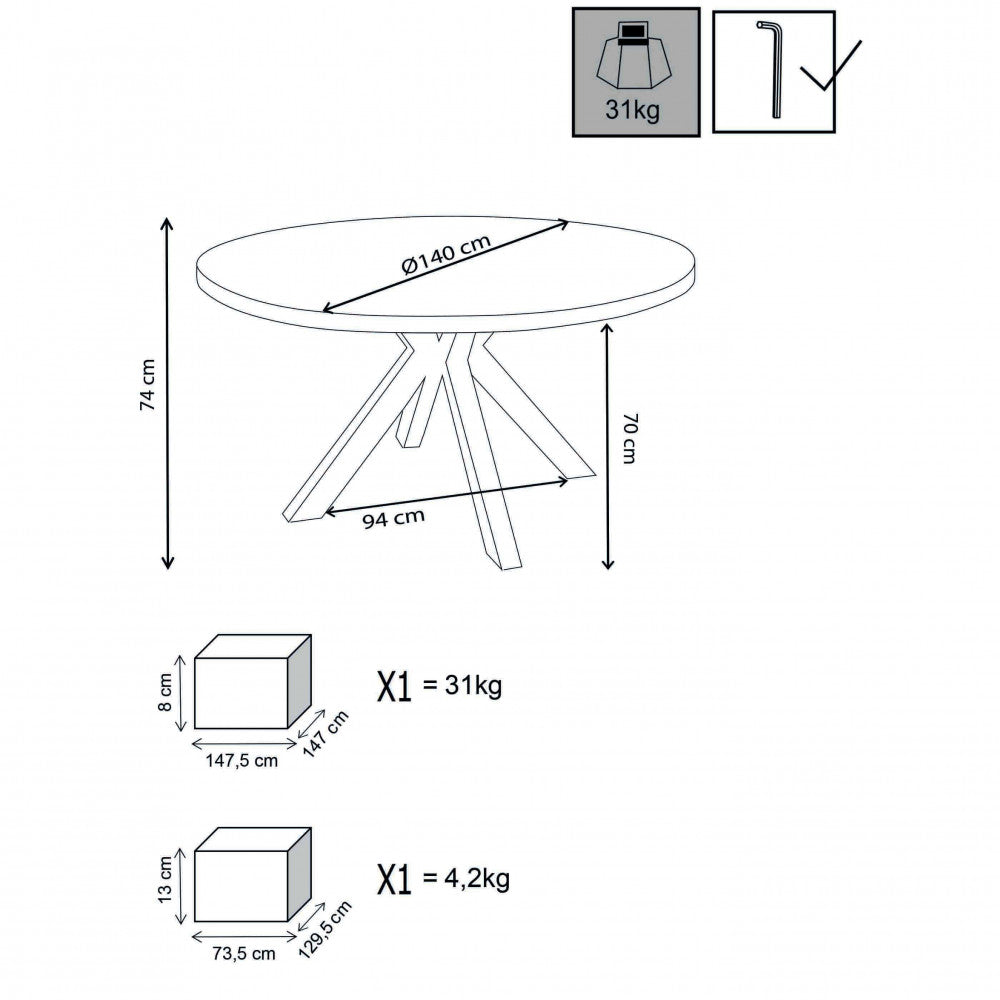 Tavolo Malesia Ø140x75 h cm in Alluminio Grigio