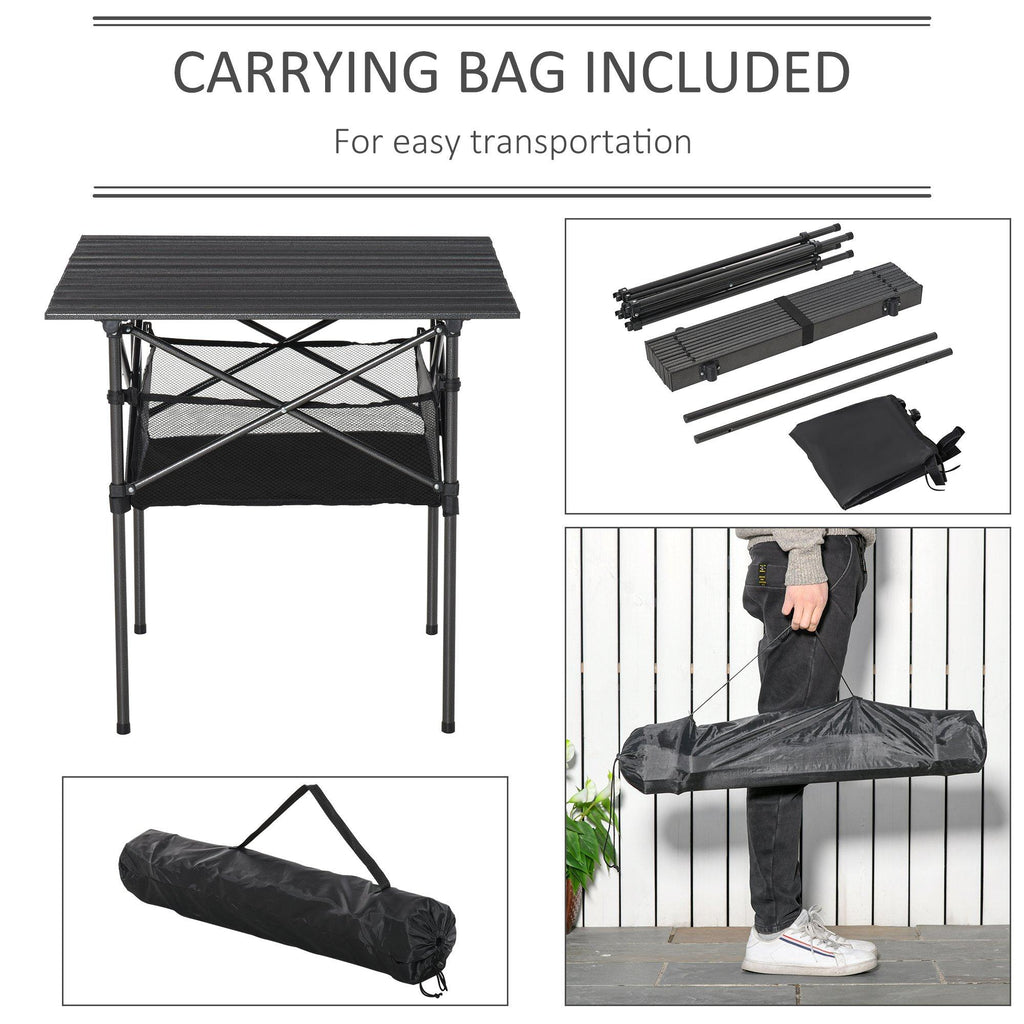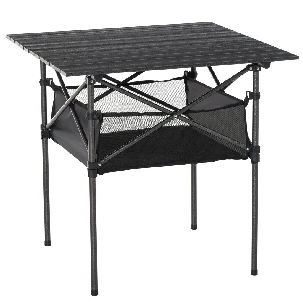Tavolo Pieghevole da Campeggio 70x70x69 cm in Alluminio Nero