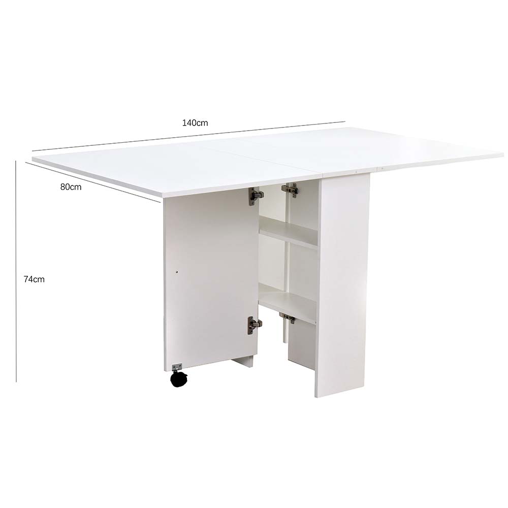 1 x Tavolo Pranzo Scrivania con Libreria Richiudibile Allungabile a Scomparsa Bianco