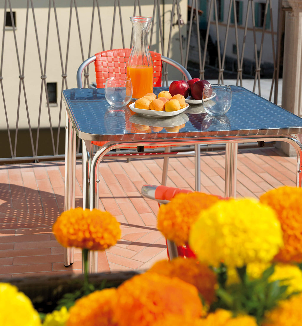 Tavolo Quadrato Impilabile da Giardino in Alluminio e Acciaio 70x70 cm Vorghini
