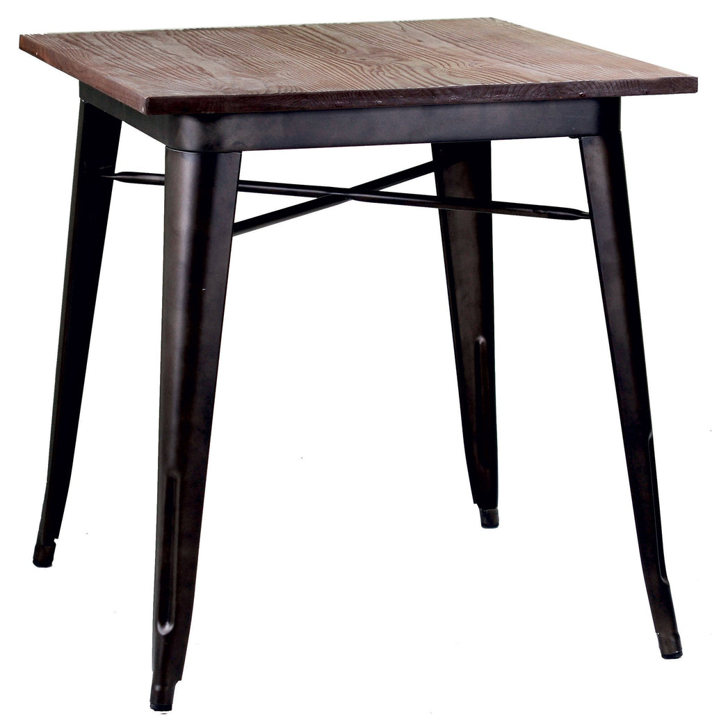 Tavolo Quadrato in Metallo Top in Legno Bristol Marrone