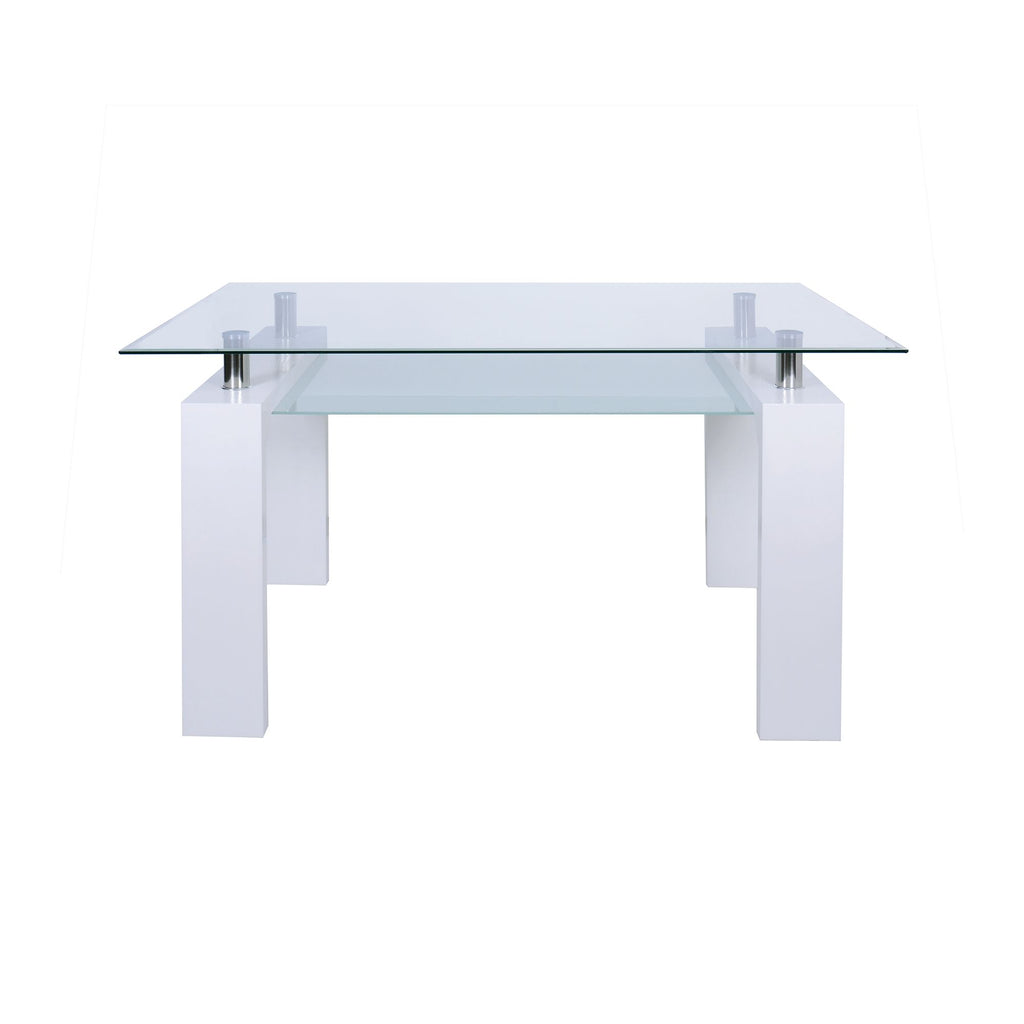 Tavolo Renee 140x90x77 cm 2 Piani Vetro Gambe Bianche