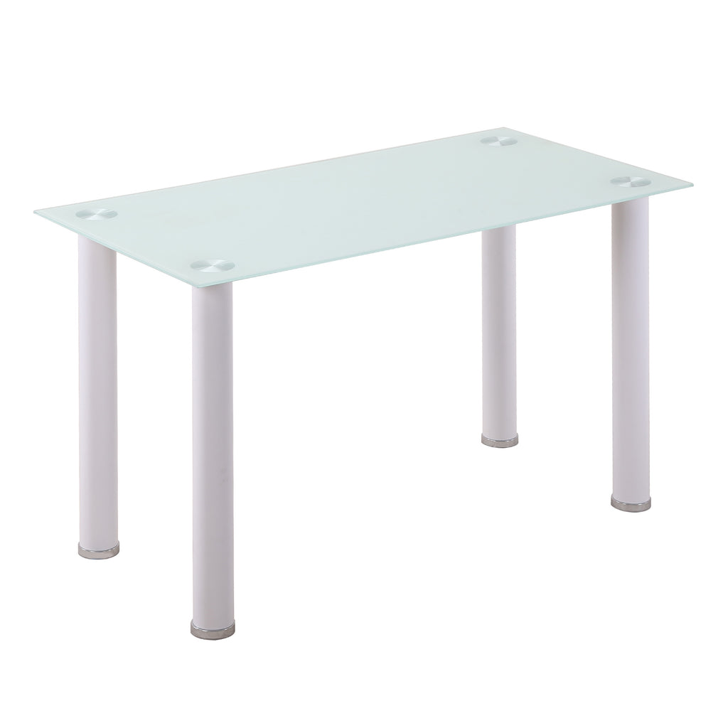 Tavolo Rettangolare 120x60x75 cm in Metallo e Vetro Temperato Bianco