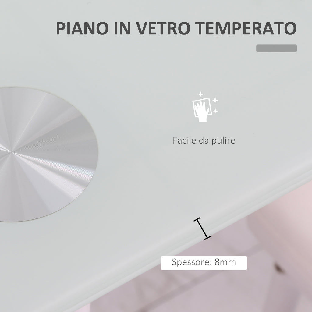 - PIANO IN VETRO TEMPERATO: Questo tavolo da cucina e soggiorno ha un piano d'appoggio in vetro temperato da 8mm, rinforzato per resistere agli urti e al peso.