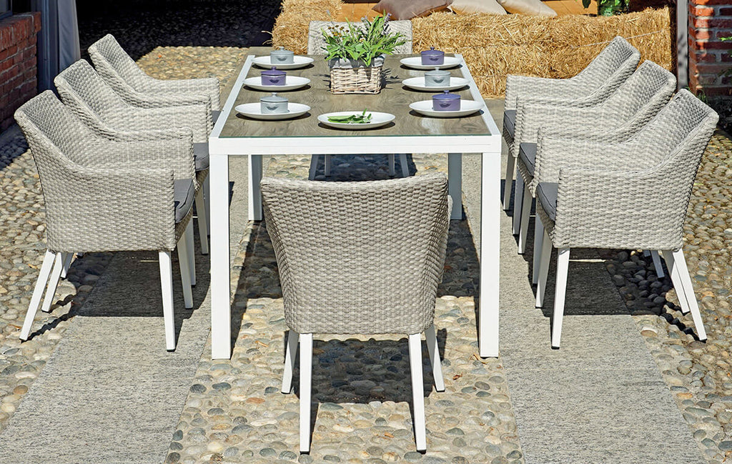 Tavolo Rettangolare da Giardino 200x96cm in Alluminio con piano in Vetro Vorghini Recanati Bianco
