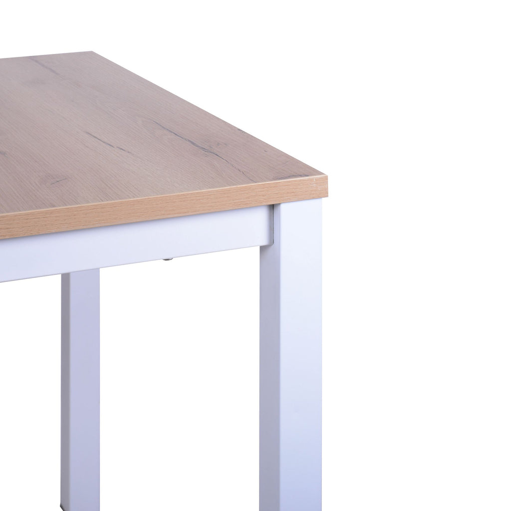 Tavolo con struttura in metallo bianco e top in MDF finitura rovere.