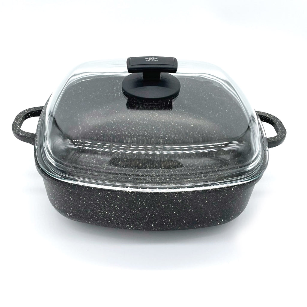 Tegame Quadrato con Coperchio in Vetro Antiaderente 2 Manici 28x28 cm Olympia Hard Cook