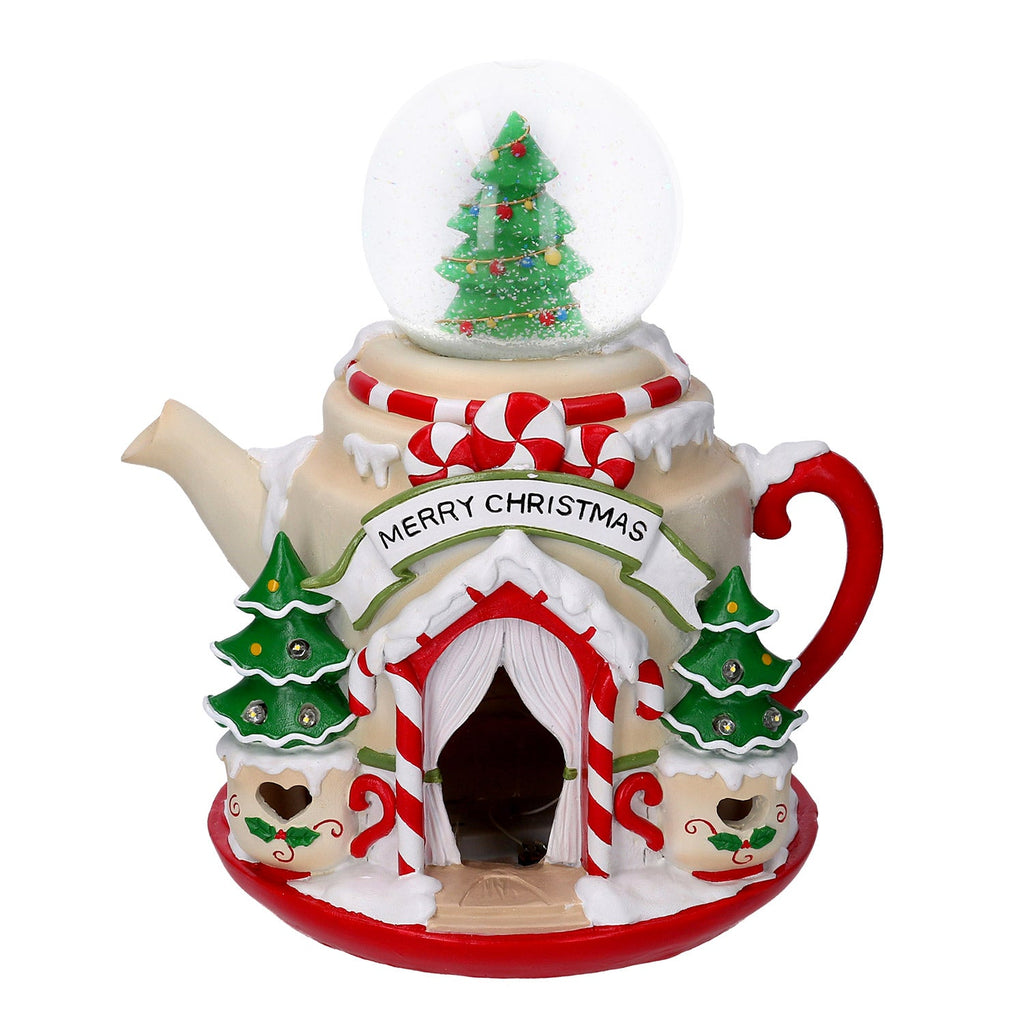 Teiera Natalizia in Resina con Led con palla di vetro rosso cm 25x22x28