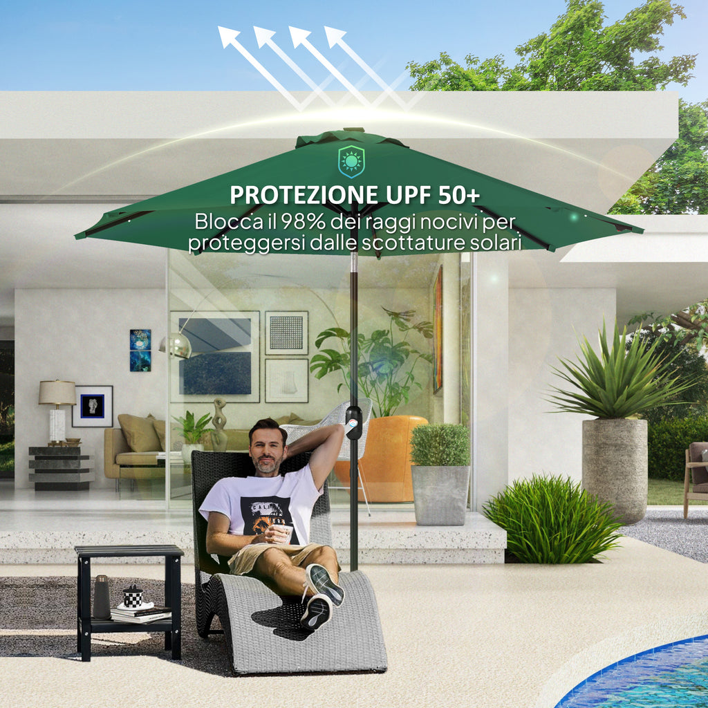 - COPERTURA VENTILATA: La ventilazione integrata nella parte superiore della copertura per ombrellone permette un flusso d'aria ottimale, evitando danni dal vento e assicurando stabilità in condizioni di vento leggero