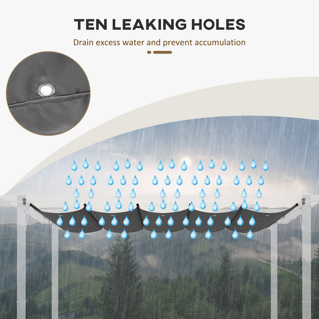 Rimettere a posto il tuo gazebo pergola è facile con questo tettuccio di ricambio di . Realizzata in poliestere rivestito in PA, questa tettoia moderna protegge il tuo spazio mentre sarà utilizzato per i tuoi eventi. Grazie ai fori su ogni estremità, il tettuccio può essere facilmente installato sul gazebo 3x3 o rimosso per essere riposto. La tettoia sostitutiva è inoltre dotata di dieci fori per il drenaggio della pioggia, in modo da non doversi preoccupare dell'accumulo di acqua.