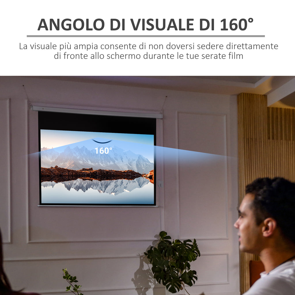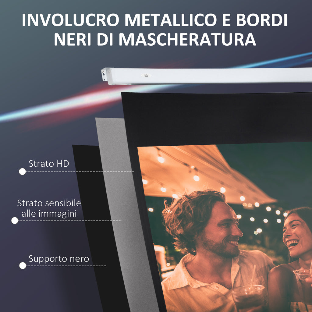 Telo Proiettore 100” 16:9 Portatile 253x7,5x168 cm in PVC e Metallo Bianco