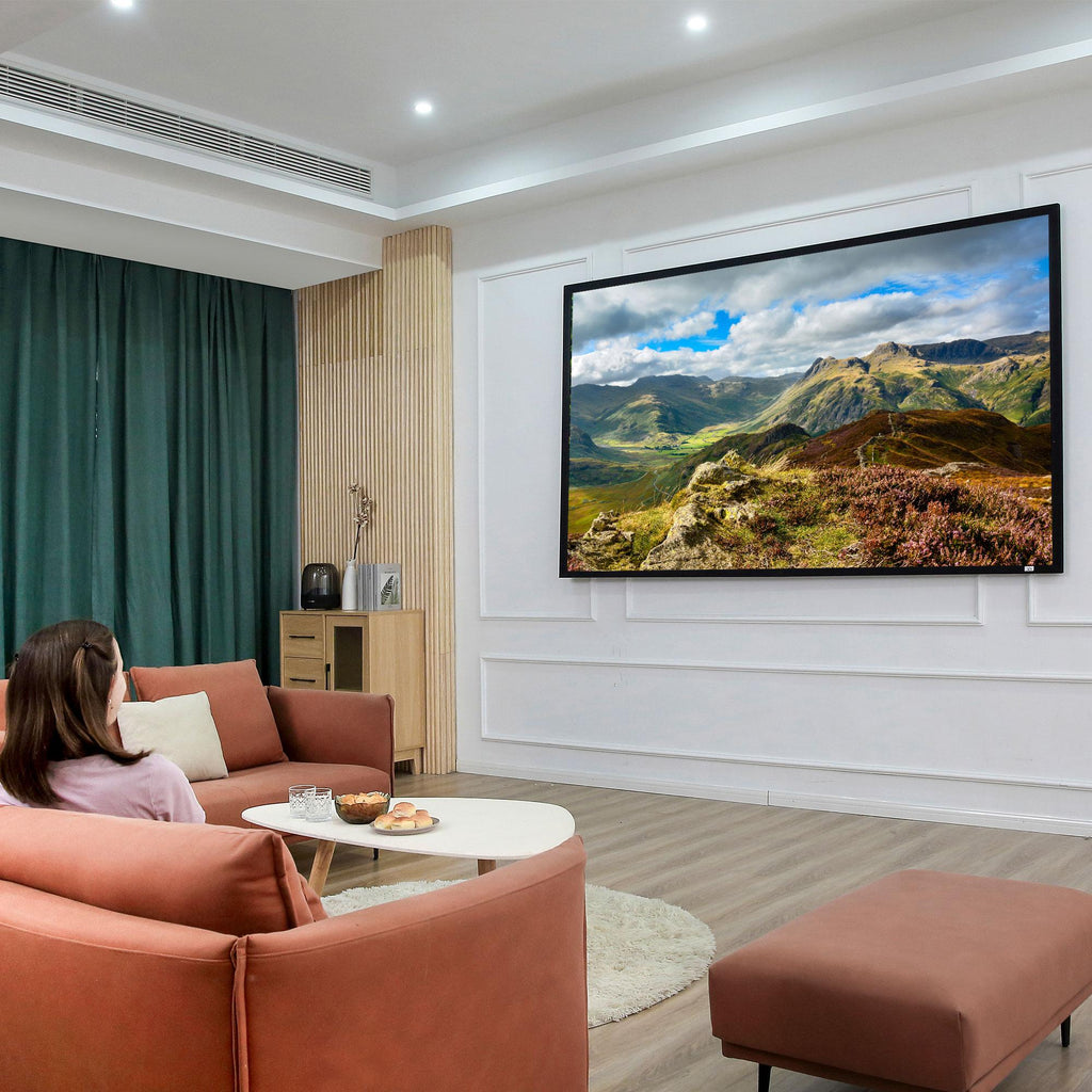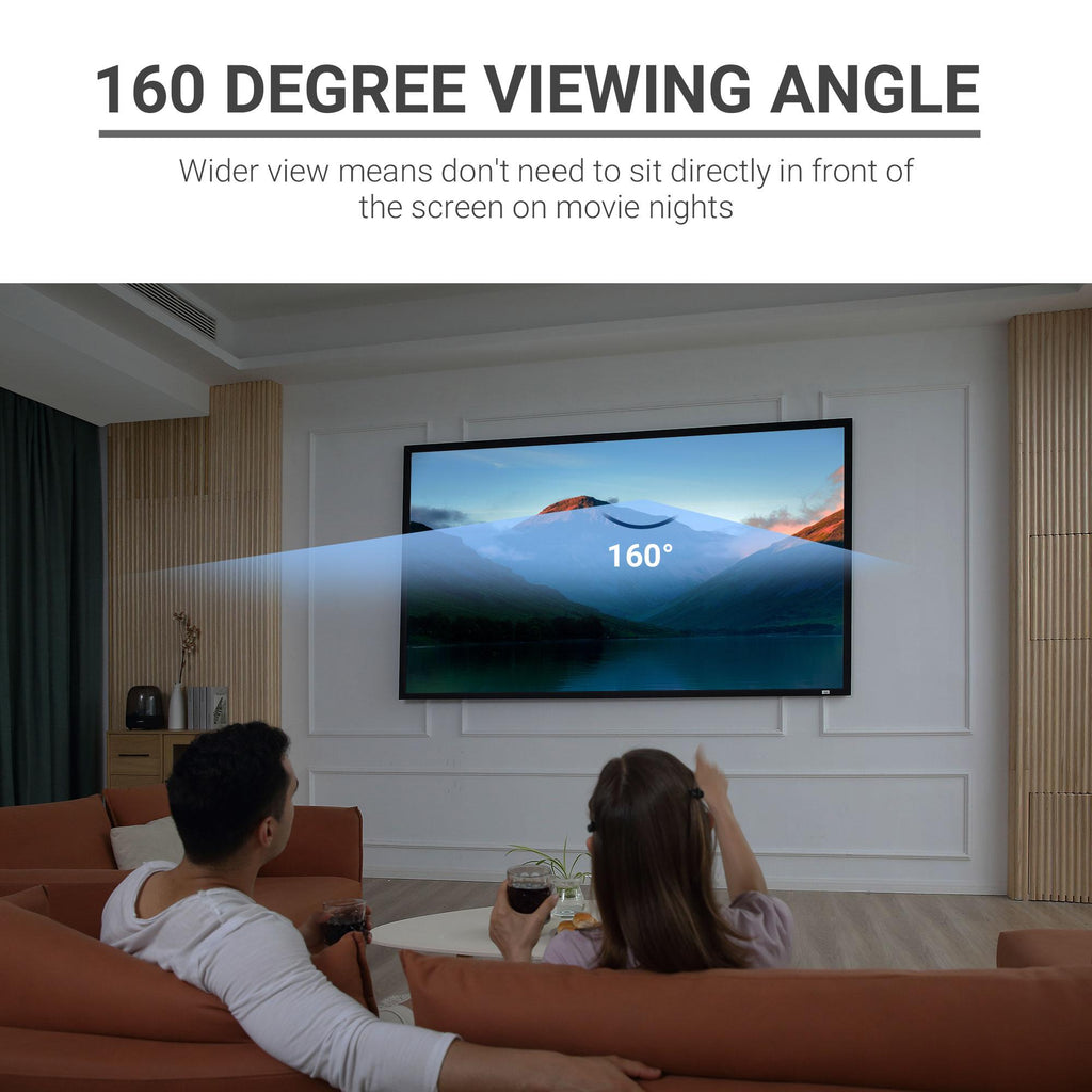 Questo telo proiettore da 100 pollici è perfetto sia a casa che in ufficio. I quattro lati con bordi neri migliorano il contrasto dell'immagine mentre l'area di proiezione è di colore bianco, per far offrirti massima luminosità. Facile da installare, richiede poca manutenzione ed è compatibile con la maggior parte dei proiettori LED, LCD e DLP in commercio.