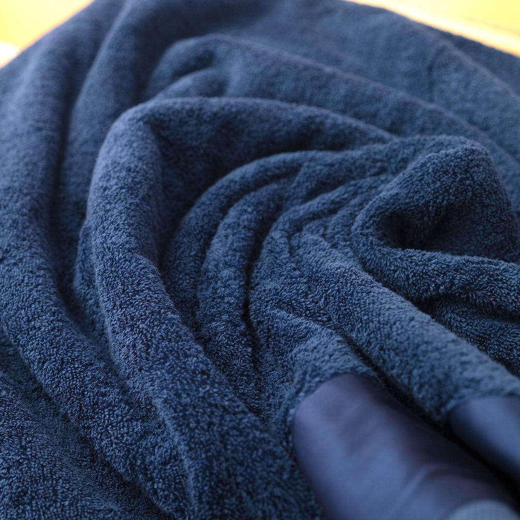 Telo spugna in spugna di puro cotone 530 gr/mq con balza in raso. Tutti gli articoli presenti nel set sono realizzati e confezionati in Italia secondo la tradizione tessile artigiana Toscana.