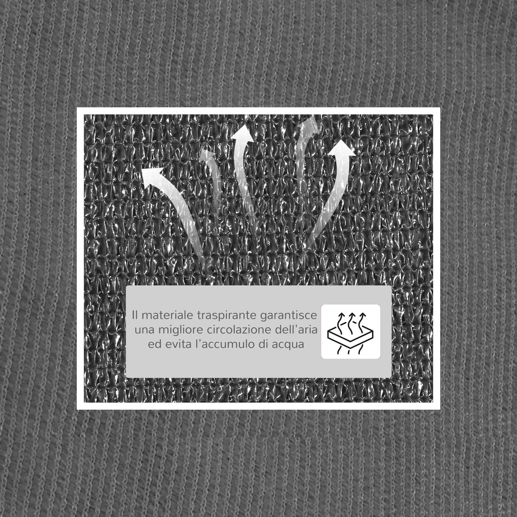 - Vela ombreggiante in materiale traspirante che permette la dissipazione del calore