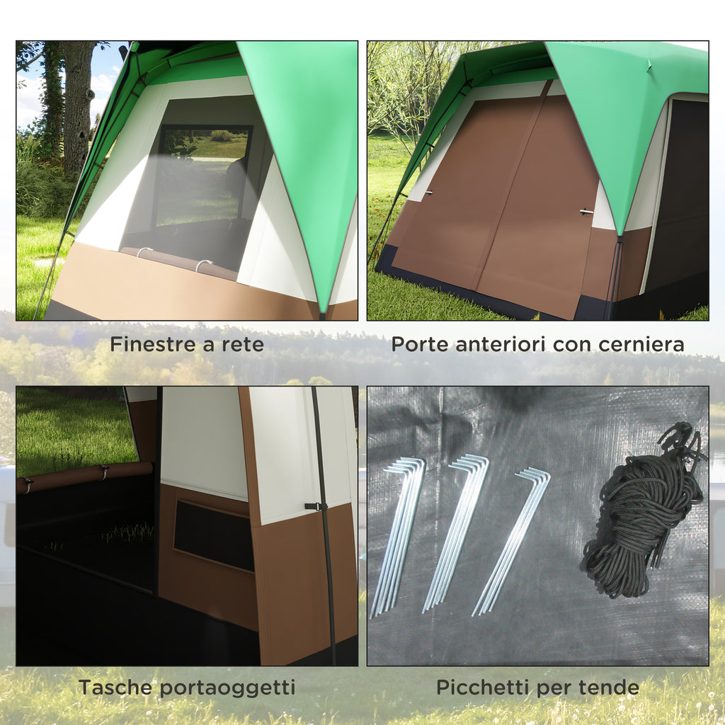 Tenda da Campeggio 4 Posti a Tunnel Impermeabile con Finestre a Rete 490x305x225 cm in Poliestere Verde