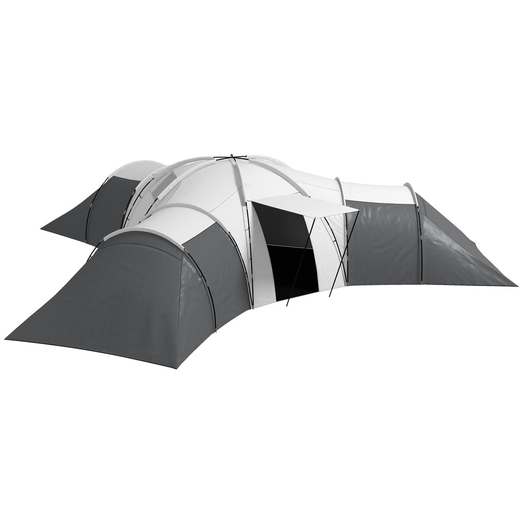 Tenda da Campeggio 6 Posti Impermeabile con 3 Aree Notte Soggiorno e Portico in tessuto Oxford Grigio