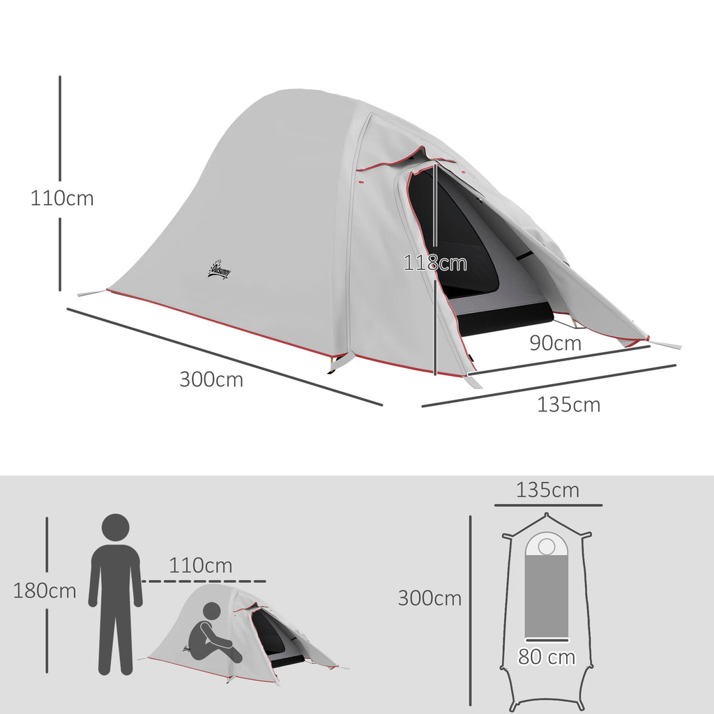Tenda da Campeggio con Borsa da Trasporto 300x135x110 cm in Poliestere e Alluminio Grigio Chiaro