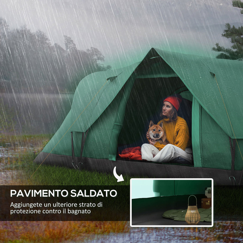 Tenda da Campeggio Idrorepellente 455x230x180 cm 6 Posti con Protezione UV e Pali in Fibra di Vetro Verde