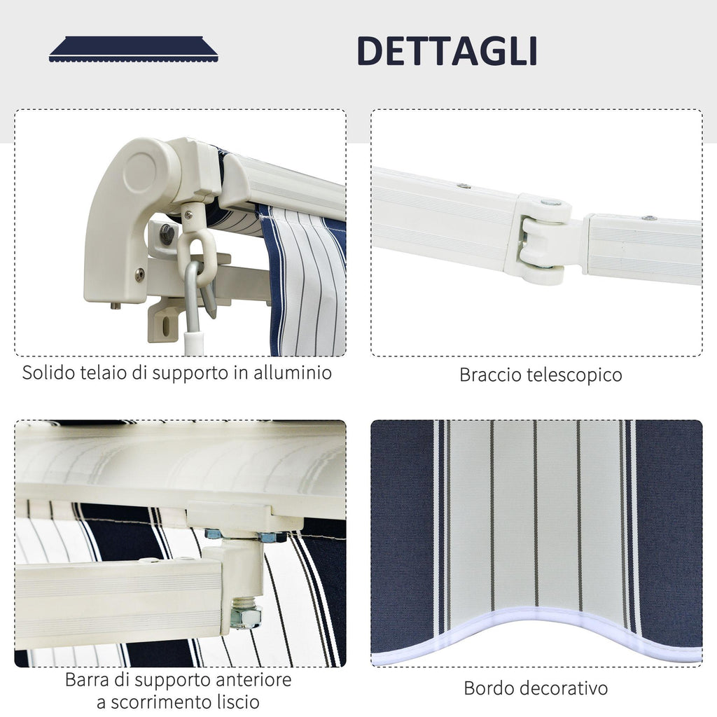 Tenda da Sole 295x250 cm in Alluminio e Poliestere Blu e Bianco