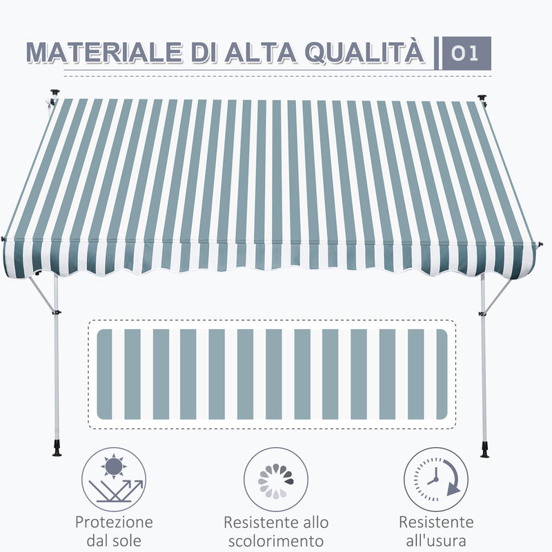 - COSTRUZIONE SOLIDA: La tenda da sole a bracci è realizzata con una struttura in metallo rivestito a polvere, pali di supporto e rullo in alluminio, per durare a lungo all'esterno.