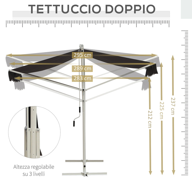 - REGOLABILE: Questo tendone da giardino doppio ha due braccia pieghevoli che permettono di regolare l'inclinazione in base alla posizione del sole, per rimanere sempre protetti dalla luce