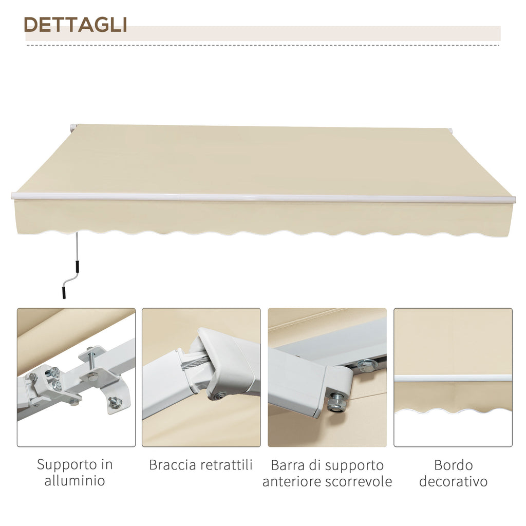 Tenda da Sole Avvolgibile 3.65x2.5m in Poliestere e Alluminio Beige