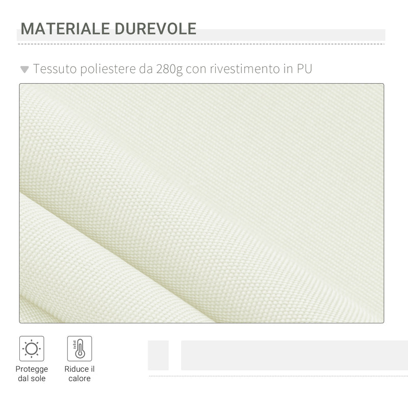 - Tessuto in poliestere sostenuto da 2 bracci retrattili, bobina e barra di supporto anteriore
