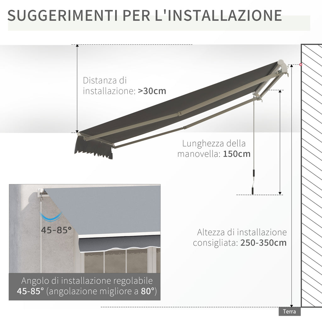 Tenda da Sole Avvolgibile a Parete 295x245 cm in Alluminio e Poliestere Grigio