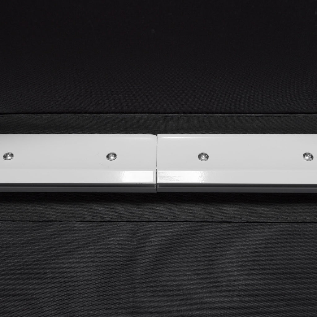 - Tenda sostenuta da 2 bracci retraibili, rullo e una barra di supporto frontale