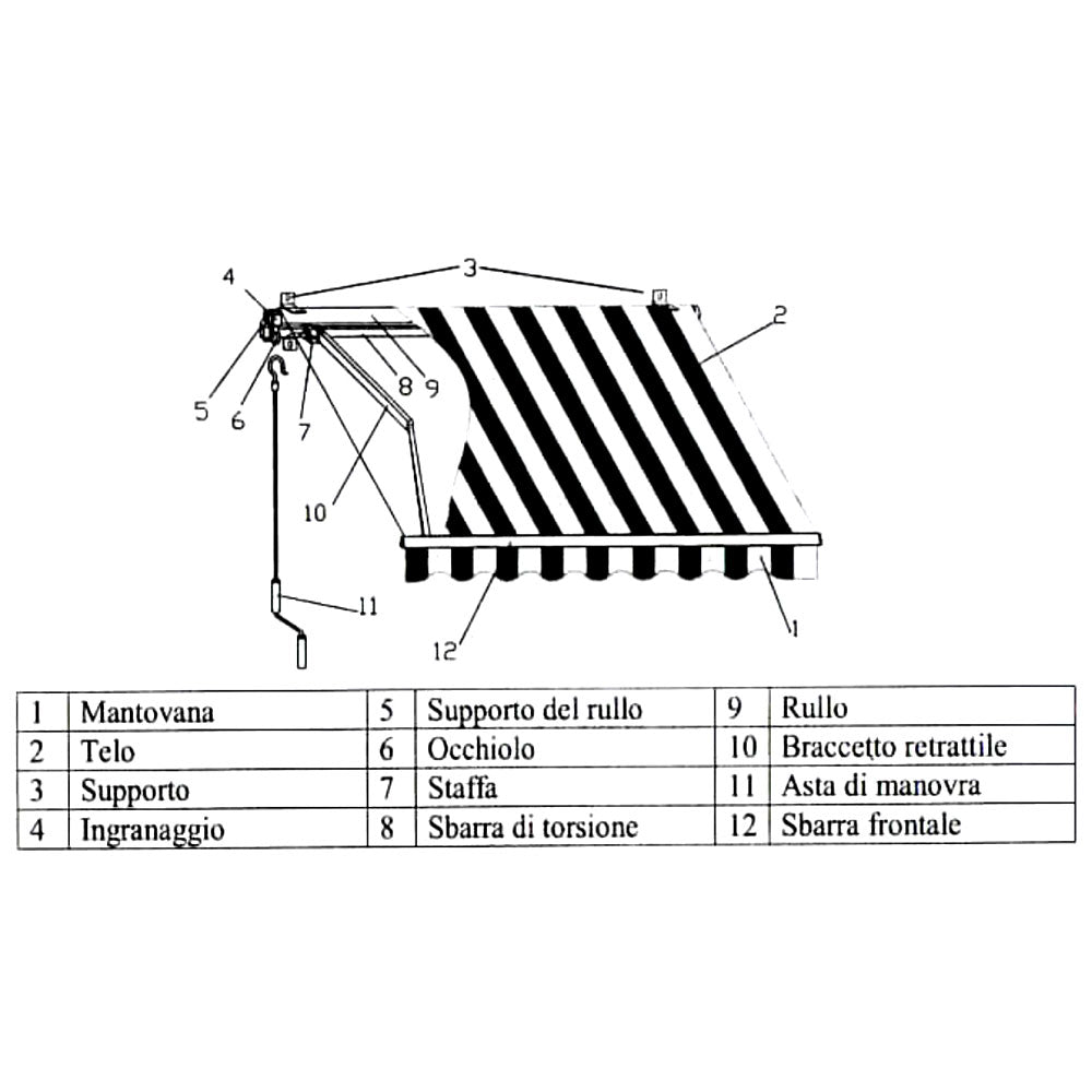 Caratteristiche Tecniche Tenda da Sole con Bracci Retrattili 3x2,5m Tessuto in Poliestere Disegno P3002