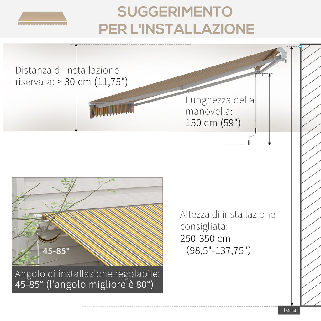 Tenda da Sole per Esterno Avvolgibile a Bracci 350x250 cm con Apertura a Manovella Giallo