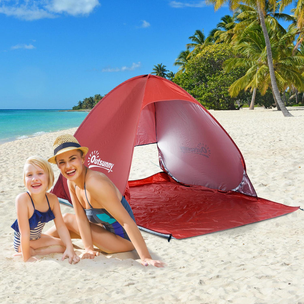 Tenda da Spiaggia Campeggio Impermeabile Apertura Pop-Up 150x200x115 cm Rosso
