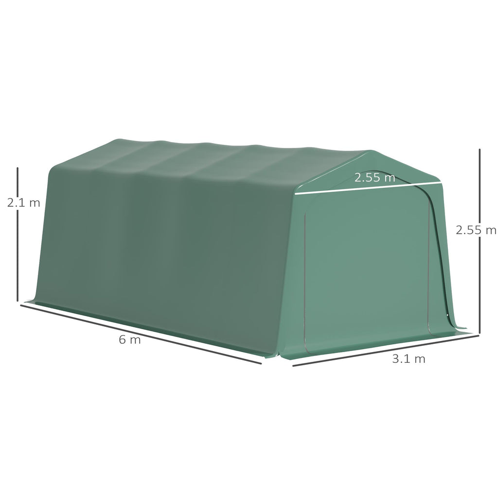 Tendone Garage per Auto Attrezzi 600x255-310x255 cm in Acciaio e PVC Verde Scuro