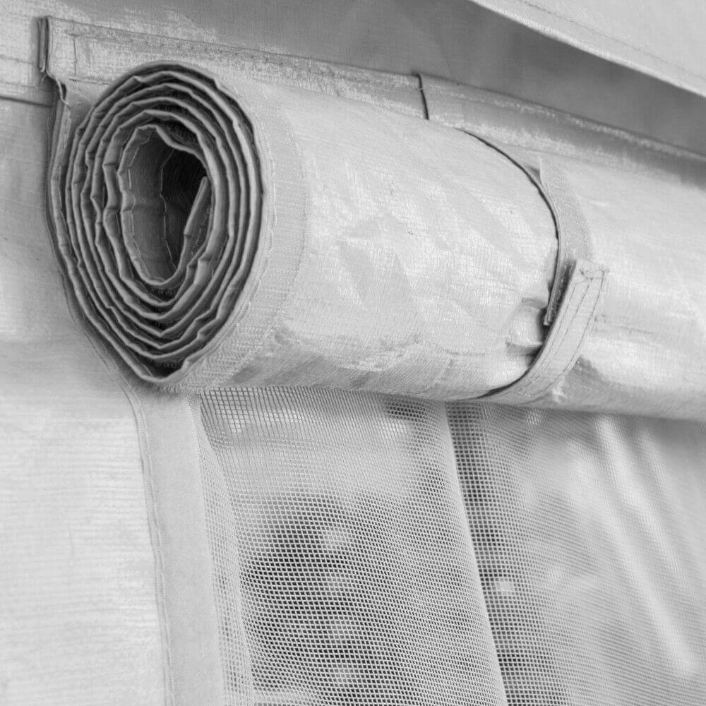 - Tetto e laterali in PE (Polietilene) gr. 220/mq ignifugo