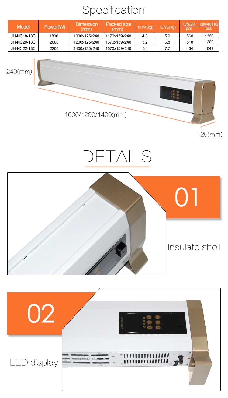 - Stufa per riscaldamento a battiscopa, perfetto per riscaldare efficacemente un ufficio, uno studio, una palestra ma anche la sala da pranzo di un ristorante o un bar