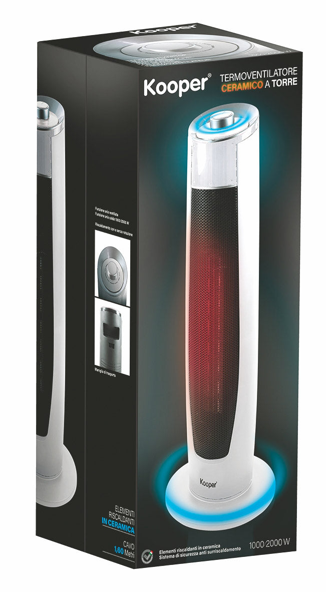 Termoventilatore Ceramico a Torre 2000W Kooper Bianco