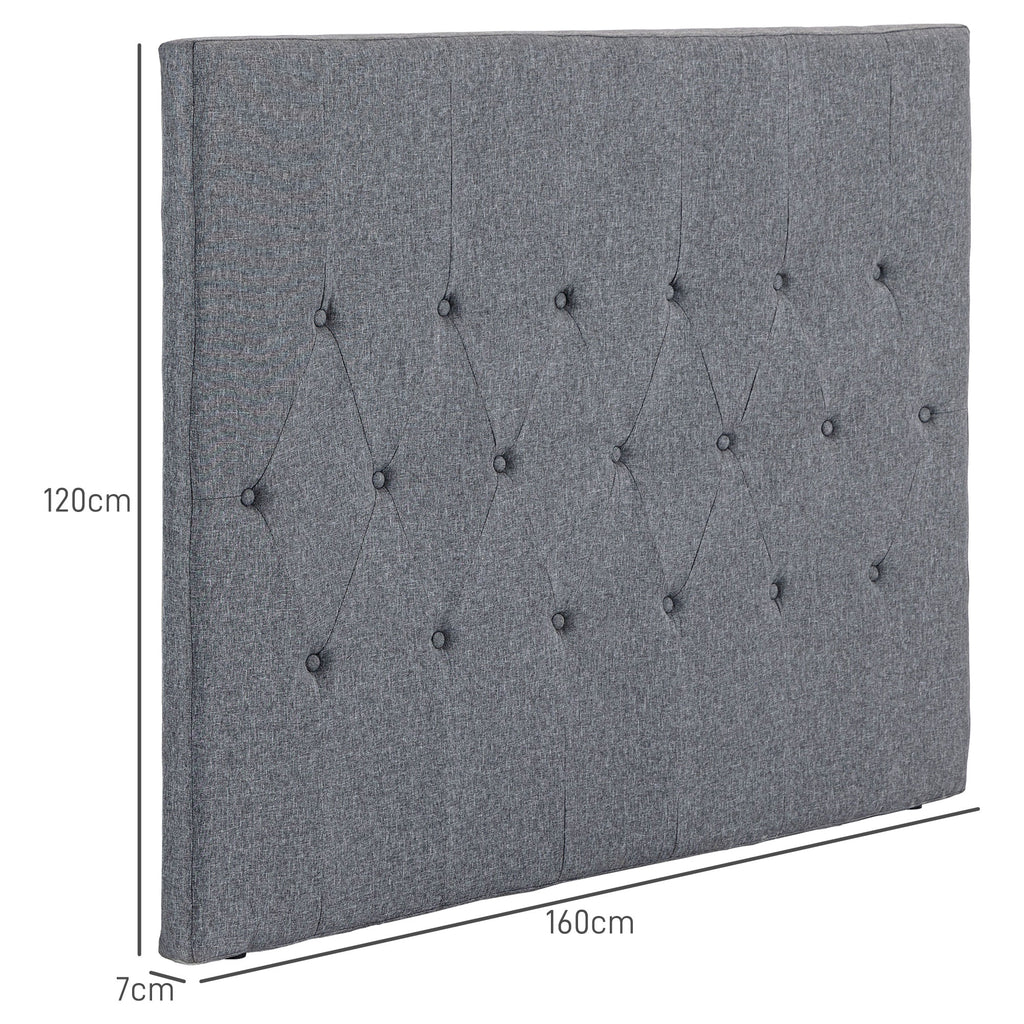 Testiera Letto Matrimoniale Imbottita Design a Bottoni 160x7x120 cm Tessuto Effetto Lino Grigio