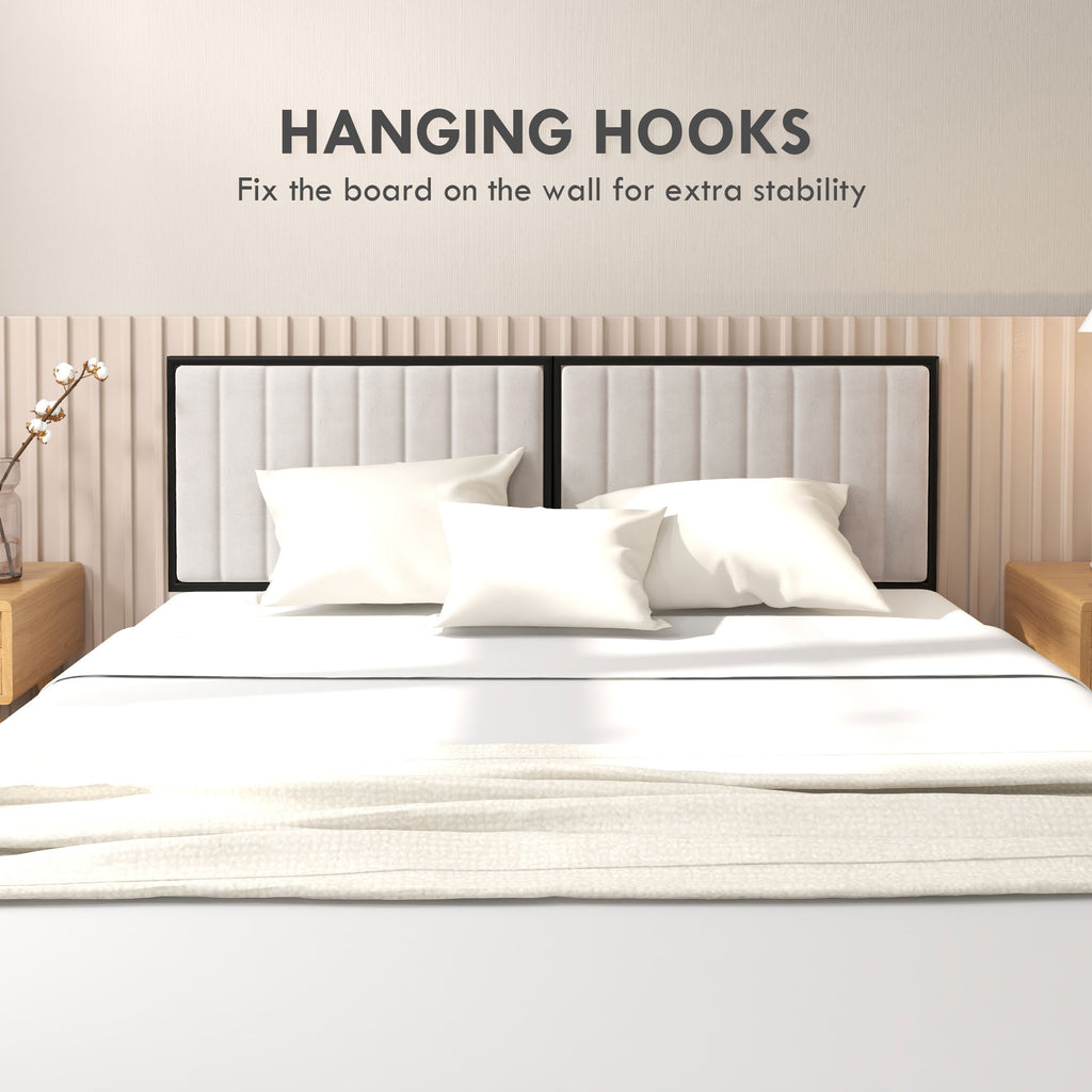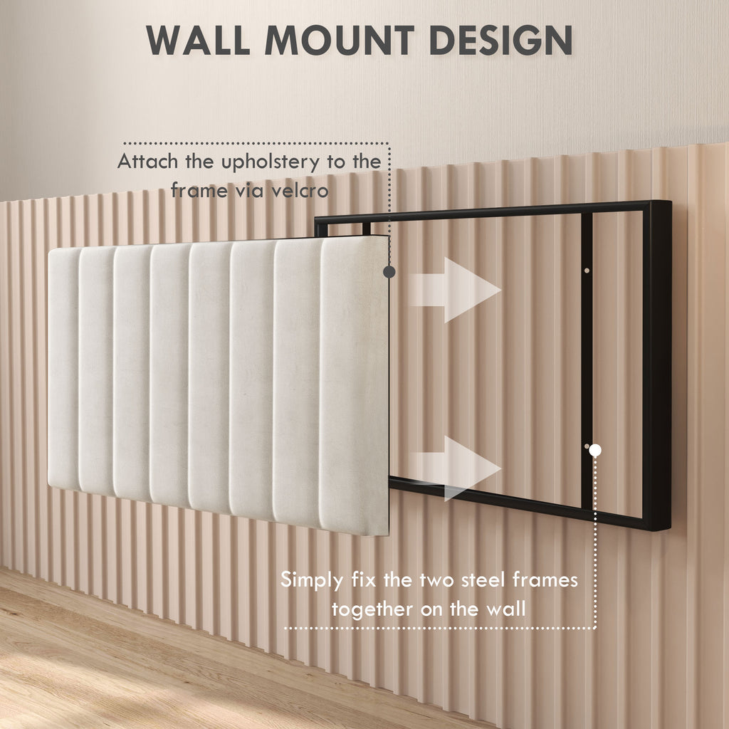 - DESIGN A PARETE: La testata letto matrimoniale è composta da 2 parti da montare a parete. È sufficiente fissare il telaio in acciaio al muro e attaccare il rivestimento con il velcro. Le viti per il montaggio sono incluse nella confezion