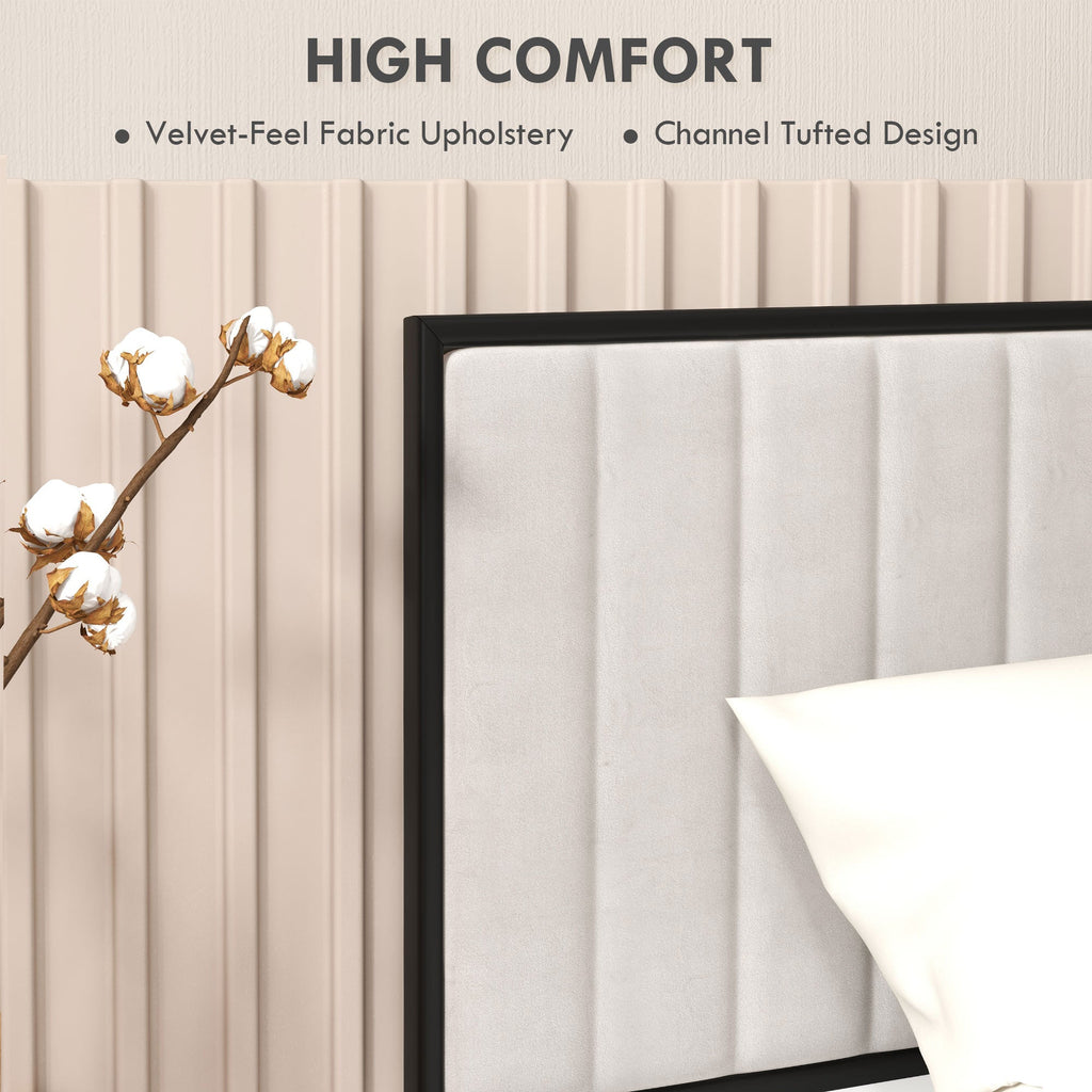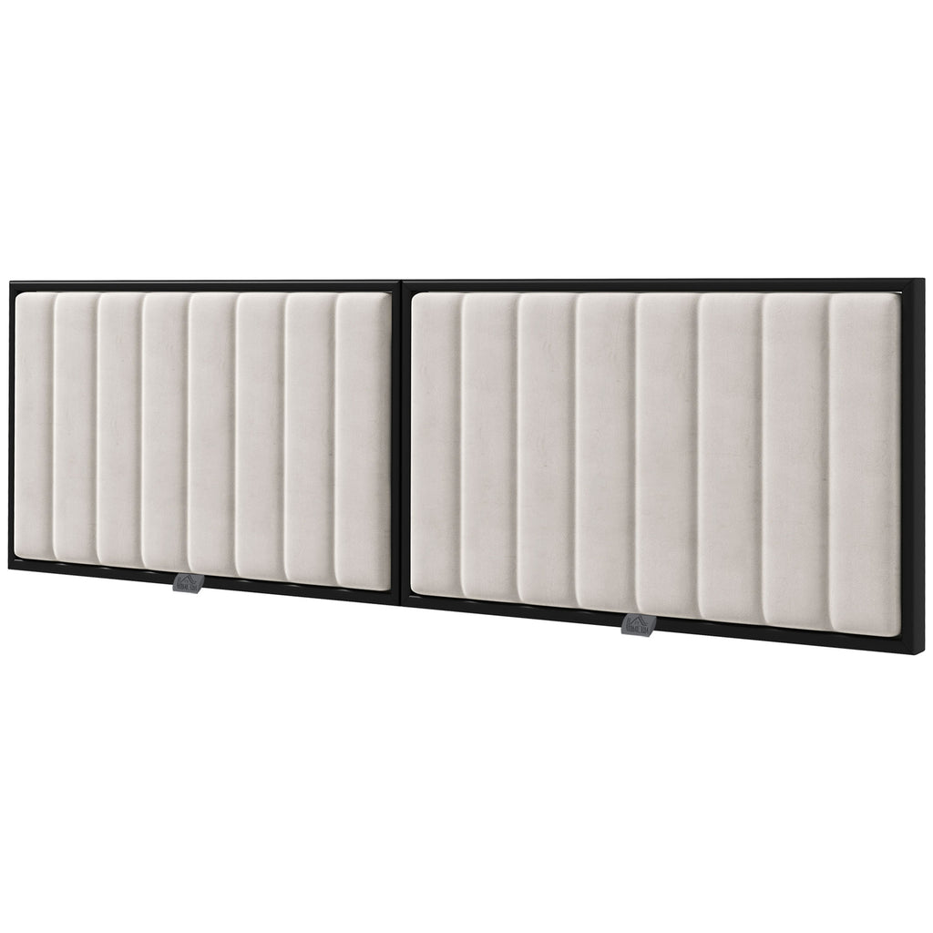 Testiera Letto Matrimoniale Imbottita in Velluto a Parete per Letti da 180cm Crema