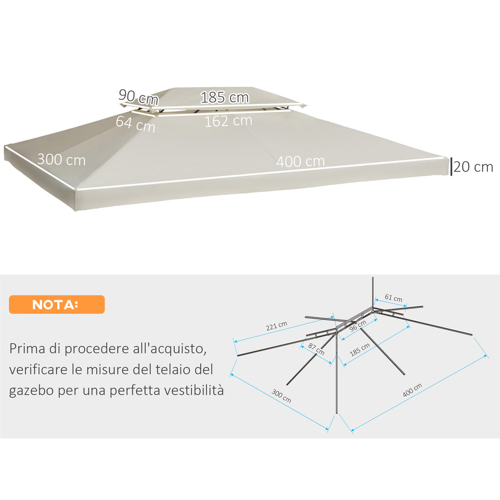 Tetto di Ricambio Impermeabile per Gazebo da Giardino Doppio Tetto 3x4m