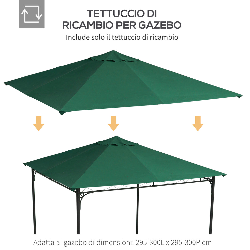 Tetto di Ricambio per Gazebo da Giardino 3x3m in Poliestere Verde