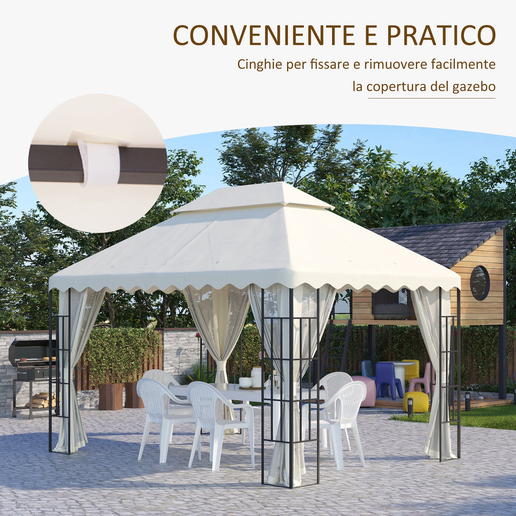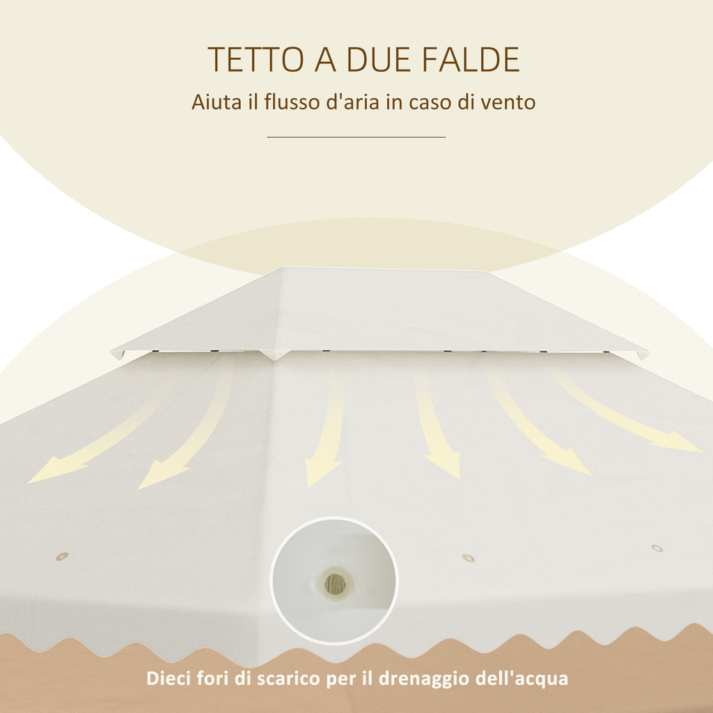 Tetto per Gazebo 4x3 m a 2 Livelli in Poliestere con 10 Fori di Drenaggio 395x297 cm in Poliestere Crema