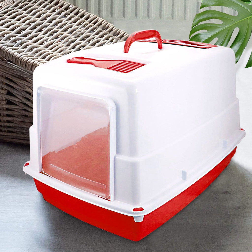 Toilette per gatti chiusa porta basculante carboni attivi 54x39x39cm Rosso
