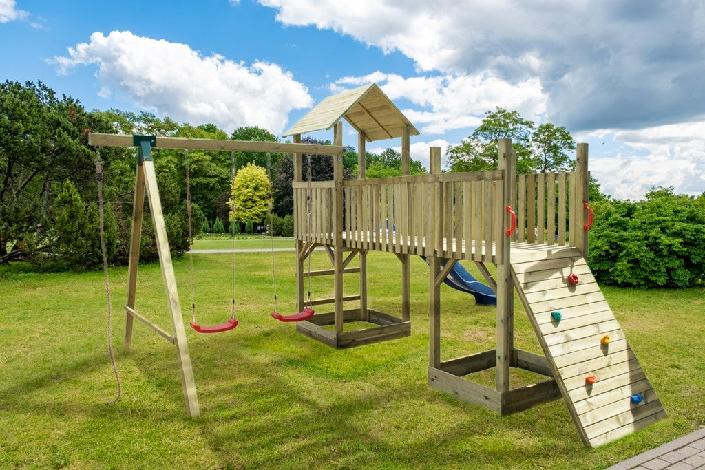 Torre con Altalenta 2 Posti e Scivolo 410x480x280 cm in Legno