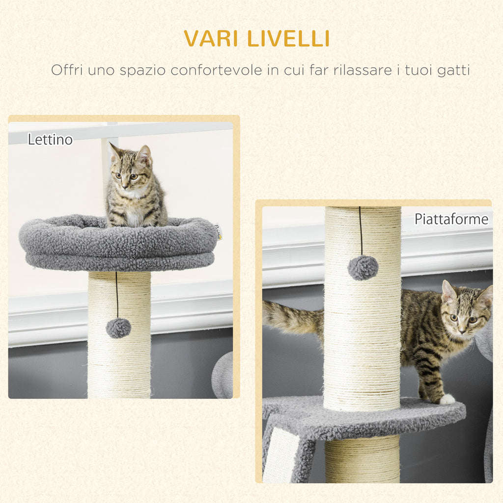 - TUTTO IN UNO: I gatti amano stare in alto per vedere tutto ciò che accade o per guardare fuori dalla finestra. Questo albero per gatti permette ai tuoi micetti viziati di riposare o fare la toeletta dove preferiscono. È incluso un tiragraffi in corda di sisal, tappetino, posatoi, letto e palline appese per un divertimento senza fine