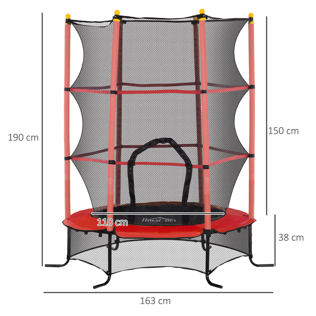 Trampolino Elastico per Bambini da 3 Anni Ø160 cm con Rete di Protezione Rosso e Nero